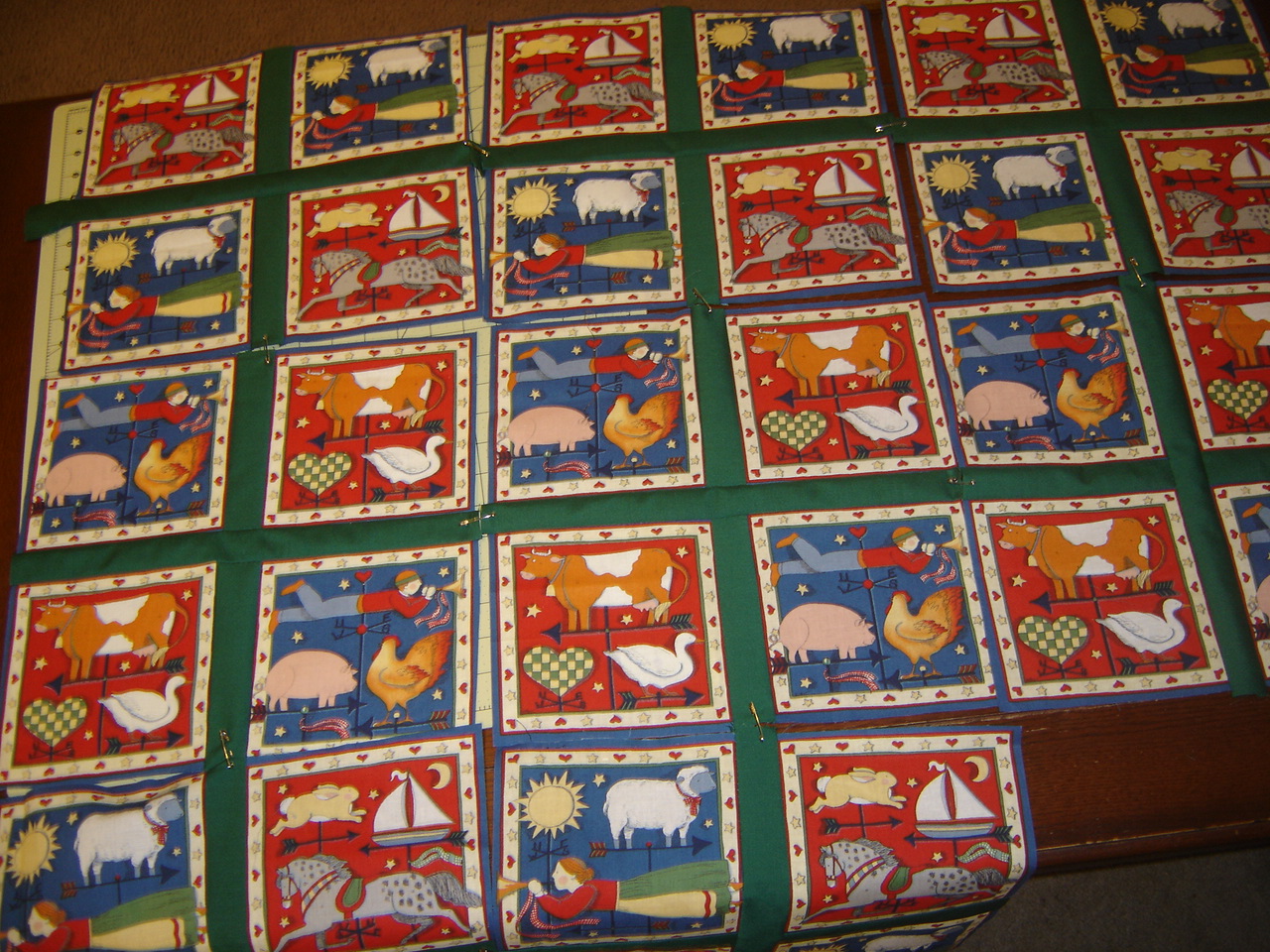 And this weekend, I bought two pieces of fabric from the Thrift Store and below is my almost complete Quilt.